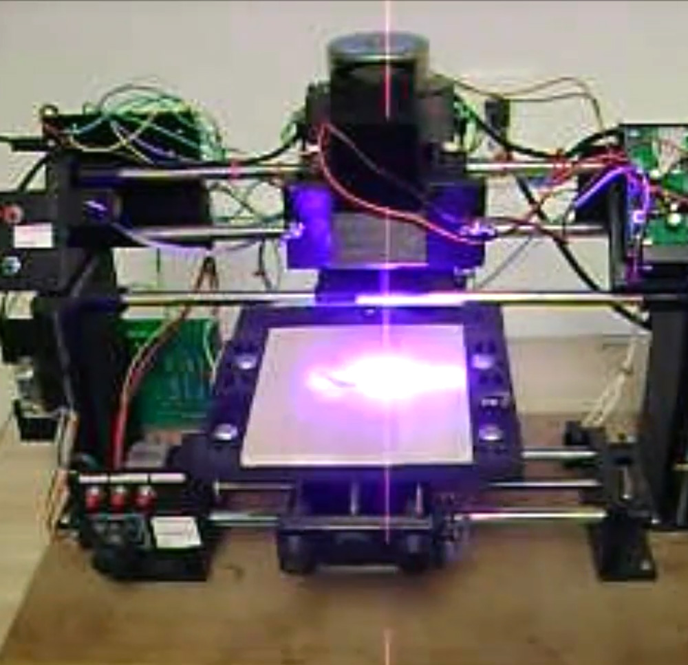 The machine shape is basic and it will look as many other. As other CNC machines, it is a 3 axis setup with a long x and y and a moderately short z. All major components including gantry type z overhead axis are 3D printed so it can be scaled up and using very standard parts throughout. Everything on the mechanical side can be bought from a hardware store. The steppers and leadscrews from ebay of course. Nothing is expensive and nothing is particularly hard to come by. The machine can have a laser engraver, or if powerful enough, it could even cut cardboard, thin wood, etc.