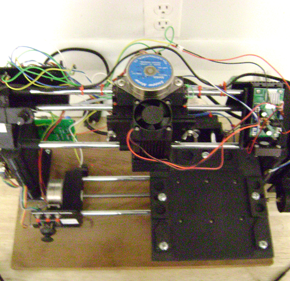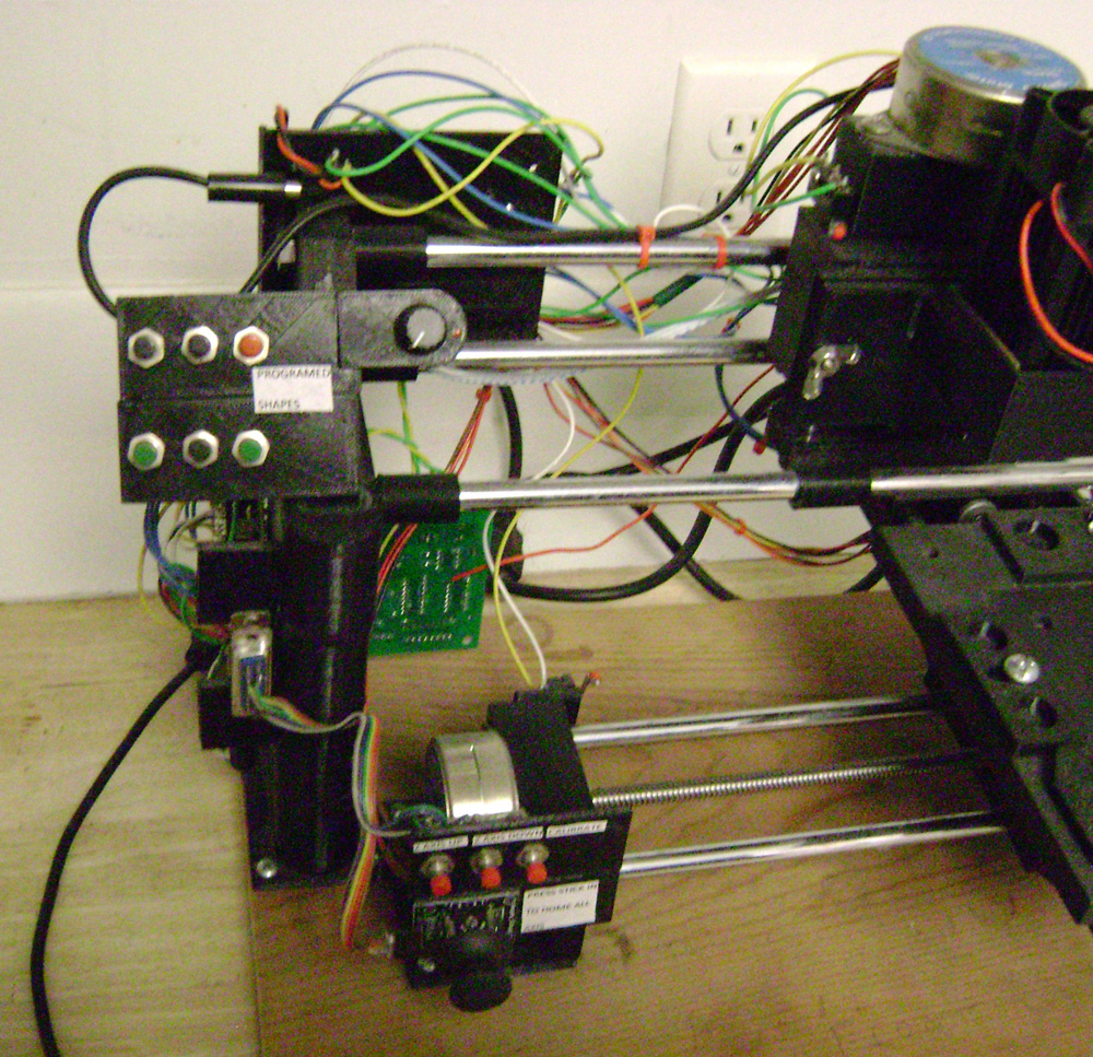 The machine also features a small onboard joystick to execute jogs and a port for a large analog joystick used for freehand cutting and slicing of material. It is good for ripping strips of material up or just making some nice graphics in wood, plastic and paper. He also designed a few PCBs for this project to make it better and witha a professional look.