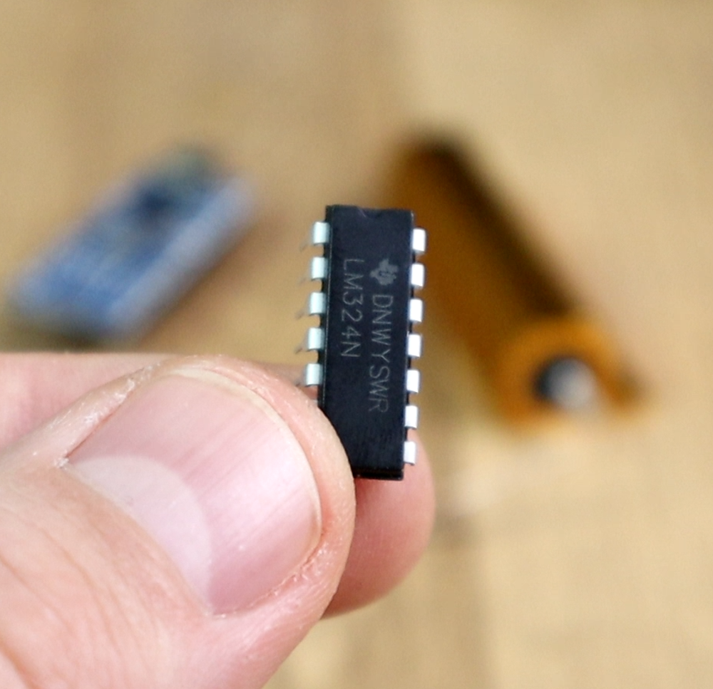 The voltage drop was small since the shunt was of 0.01 ohms. So, he used an OPAMP LM324 and amplified the voltage then measured it using one of the Arduino ADCs. Once the current is measured, the rest is easy.