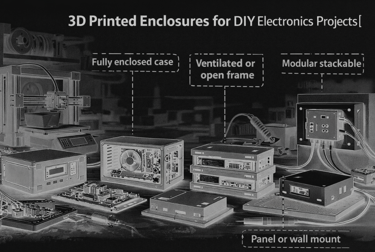 3D-printed enclosures are housings that protect and organize the electronics in your DIY project. A breadboard demo can work on a desk, but it will fail the first time you carry it or set it near metal tools. Because every board layout and connector choice changes the shape you need, the 3D printing process fits DIY electronics.