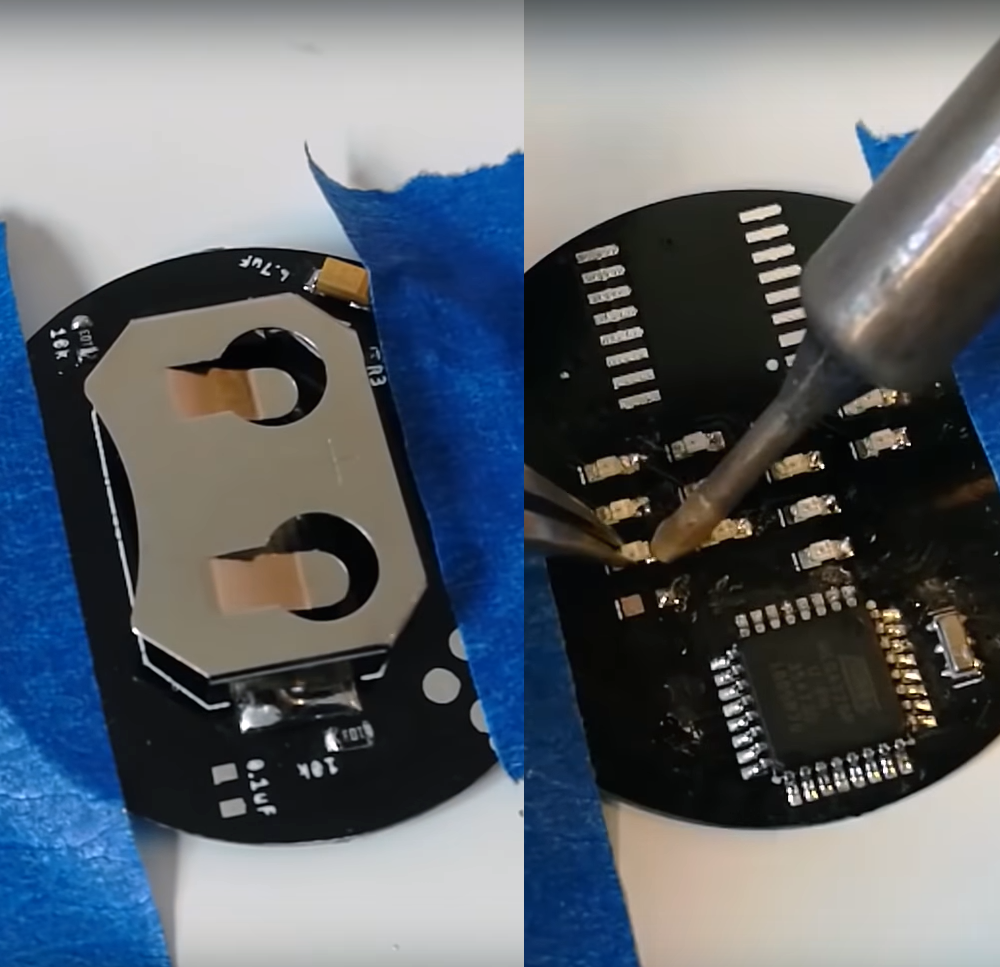 The DS3231, must be set first. For taht a first code with the actual tiem was burned and after that the watch code is finally burned to the chip and a fianl test was given. He also made a case and belt for the watch.