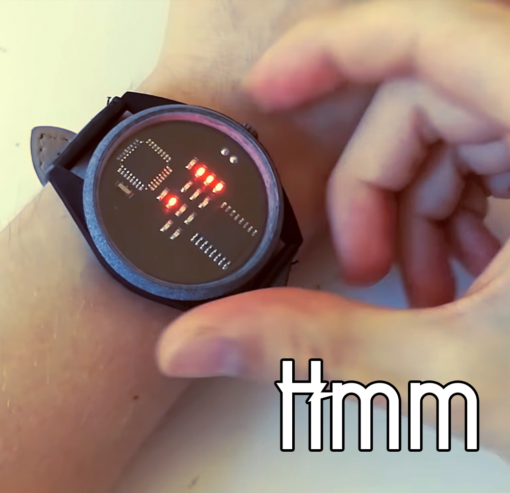 But how to read the time? Well simple. Binary goes like this. If we have a 0 (LED turned off) we add nothing. If we have a 1 (LED turned ON) we add 2 raised to the order of the bit. For example 1 0 0 0 is equal to 2 raised to 3 + 0 + 0 + 0 equal to 8. So the watch has 4 columns with 4 bits. So we could show both values for hour and minute.