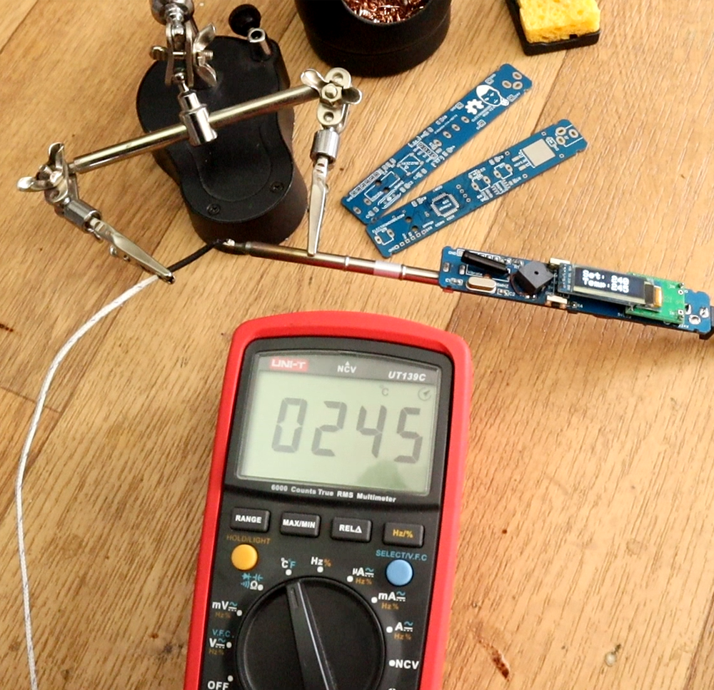 The board also has a buzzer for sound short signals like when we get out of sleep mode or turn the iron ON. The rest is the same as version 1. Same OLED screen, same microcontroller, the ATMega328 chip and same MSOFET. Electronoobs announced in his video, that a 3rd version is planned. So, that's the second version of the ELECTRONOOBS soldering iron with better tip, that could reach higher temperatures and the heat transfer is way better. Also the new firmware has better PID control for way more precise temperature tested with external thermocouple. Reading the temperature was the most difficult part of the projet, EN says