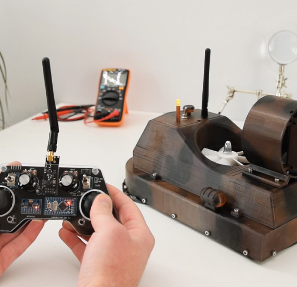 If you want to see more check original video here on How To Mechatronics YouTube channel. He will provide you all you need to build something like this. Alos the board for the transmitter that he also designed.