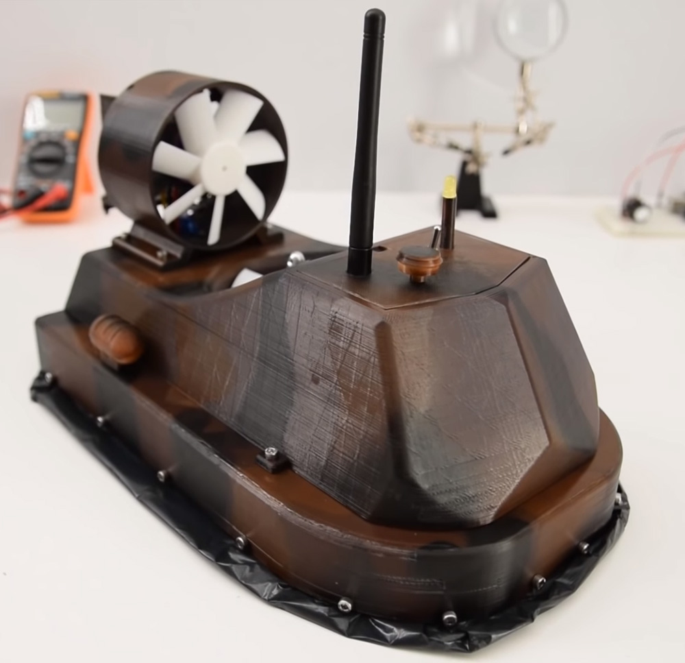 What is a hovercraft? Hovercraft, also known as an air-cushion vehicle or ACV, is an amphibious craft capable of travelling over land, water, mud, ice, and other surfaces .Hovercraft use blowers to produce a large volume of air below the hull (air cushion) that is slightly above atmospheric pressure. How To Mechatronics YouTube channel presented his work on such a craft that was 3D printed and wotrks with Arduino and it is radio controlled. He designed all the parts, shares the schematic for the transmitter and receiver, explains how it works and all we nned in order to make one. Check full vifeo for more.