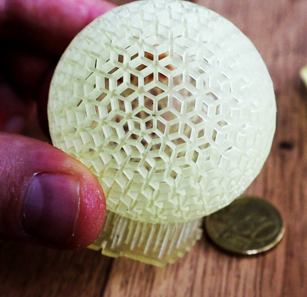 Here we have more examples with the printer. The sphere is included in the SD card you receive with the FLSUN-S printer. You also receive a bottle of 500ml of green transparent UV resin so you could start printing.