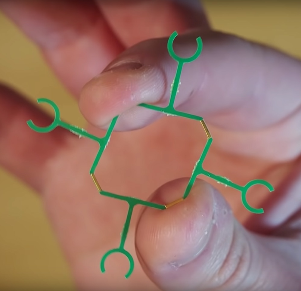 In the photo above, as you can see he also designed a very fine PCB as the frame of the robot. The PCB is very, very, thin. This frame will support the neodinium magnets and also connect to the flexible pcb. The flexible board is the brain. It has the power circuit and the bluetooth module and microcontroller. The coils are the legs of the robot and those will vibrate on top of the magnet.