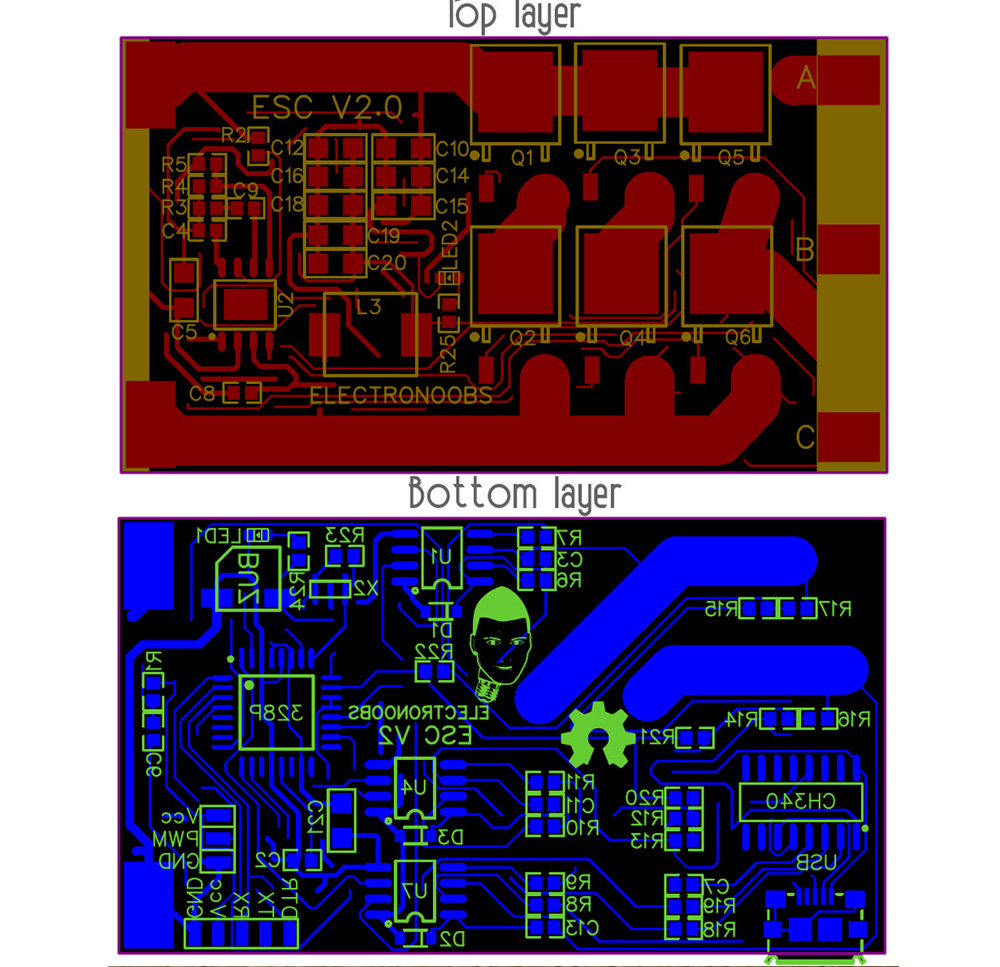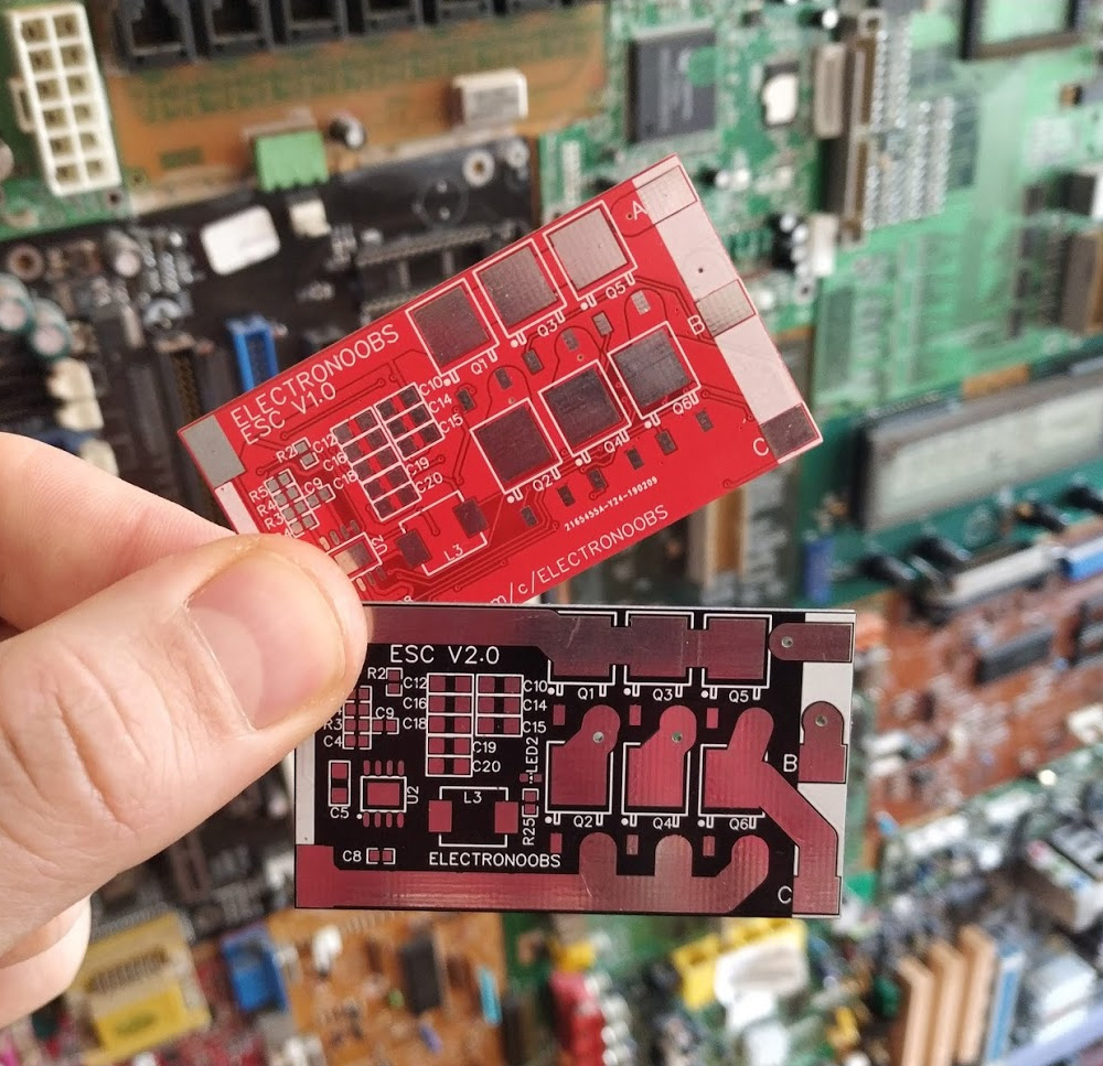 So guys, a few days ago we have seen the ESC open source board that ELECTRONOOBS made for all us. He then told me he realized a few errors or weak points with the board. That's why he then made a second version with a few modified parts. The components are the same as before but the changes are made with the layout. Why? well, an ESC is a current beast. This board could go up to 30A so we need a good layout for heat dissipation, magnetic noise, etc.