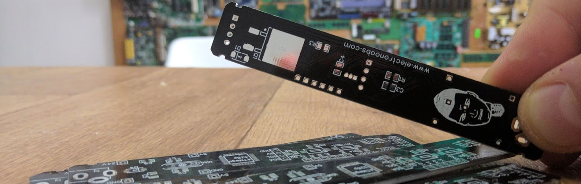 ELECTRONOOBS is on fire. Here we have the PCB he just ordered for his new project. After reviewing the TS100 portable soldering iron, he was amazed of the internal structure simplicity. So, he started designing his own board for a new project, a portable soldering iron. The board looks complicated but it’s quite simple. In the middle, the microcontroller and 4 pins for an OLED screen. That screen has i2c communication so SDA and SCL pins are needed. On the left side, a place for two push buttons can be seen. Those buttons will be used to set the desired temperature. On the left end we can see 4 pins, 2 for the heating element output, H+ and H- and 2 more for the thermocouple read, T+ and T-. The U1 chip is the MAX6675. On the back we have the huge MOSFET for power control. ELECTRONOOBS ordered his design to be manufactured at PCBWay.com and this is the final look.