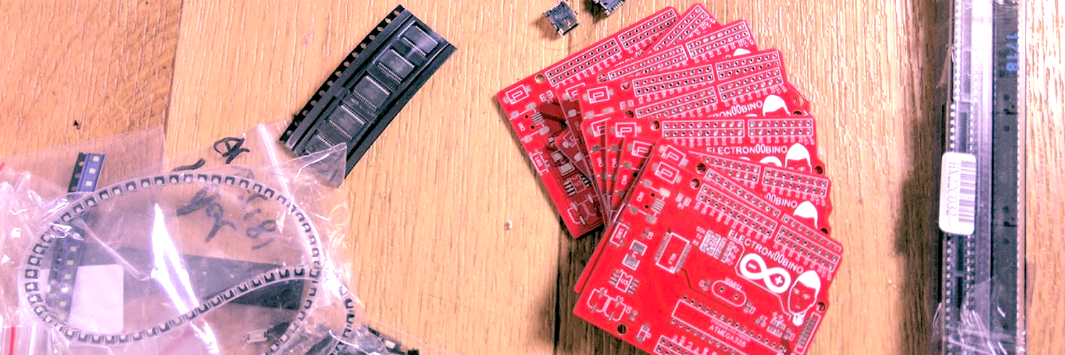 Is time to gather the components. The circuit is quite simple. The board has the bare minimum ATMega328 circuit but with a few more things. EN wanted a double row of pins since he will use this board for a lot of tests. Having multiple pins allows you to use more jump wires at the same time.