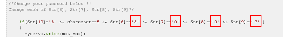 To change your password just go to the line from the photo below and change each of the four Str values. In this example the password is 3007. The "A" character will be the "OK"