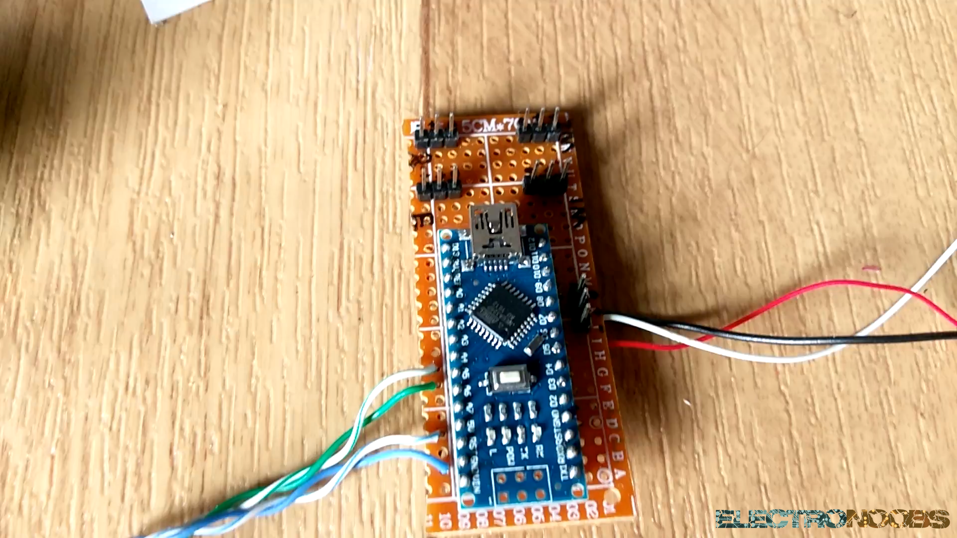 I've also soldered the flight controller arduino to a drilled PCB. I've soldered some pins for all the outputs. Ground, 5 volts and signal pin for the wing1 servo, wing2 servo, rudder servo, elevator servo and the ESC. I've soldered some wires for the i2c comunication of the MPU6050 module. In this way I can glue the module inside of the pilot case so it won't move around. See the final PCB in the next photo.